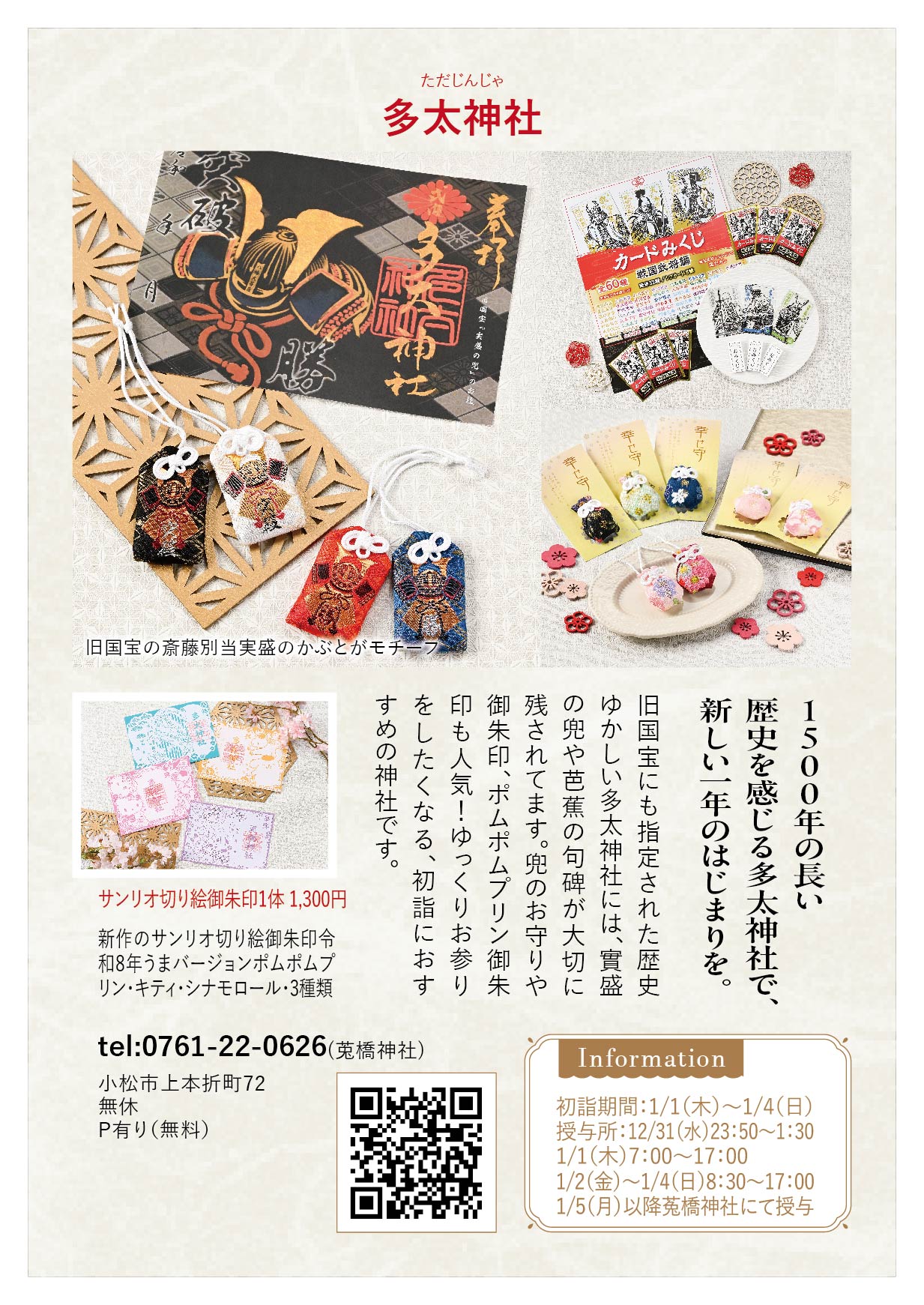 ※1/1~1/4は多太神社授与所にて授与(書き置きのみ)