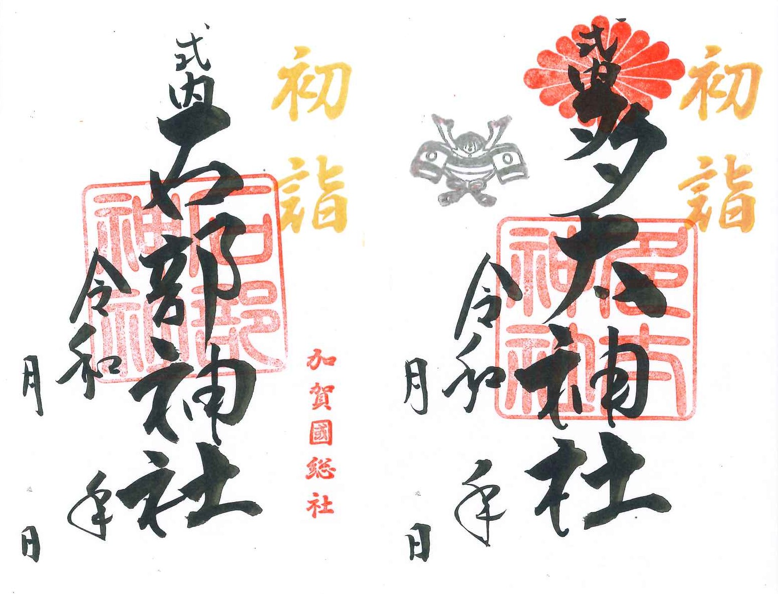 石部神社初詣限定御朱印500円 多太神社初詣限定御朱印500円